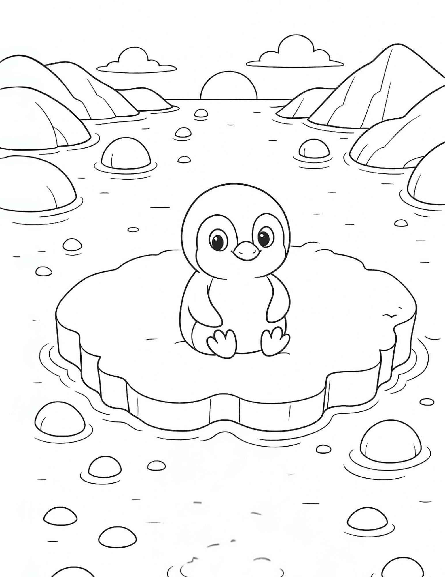 Pensive Penguin: The Floating Path, Coloring Book for Kids