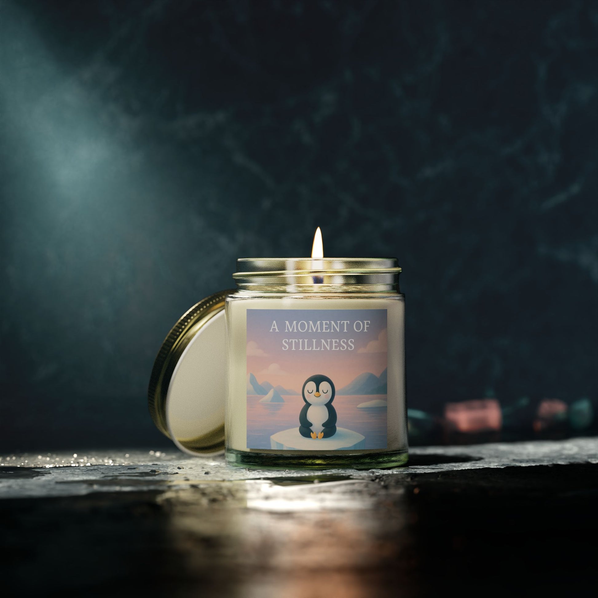 Pensive Penguin Scented Candles for Mindfulness & Calm, Eco-Friendly Coconut Apricot Wax, A Moment of Stillness